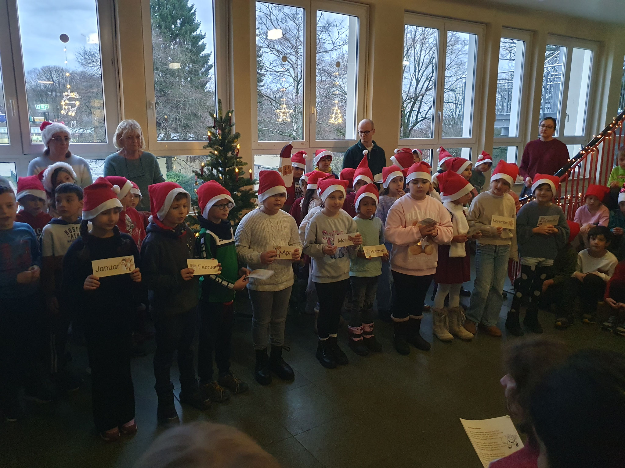 Kling Glöckchen, klingelingeling - gemeinsam im noch dunklen, nur mit Lichterketten erhellten Treppenhaus zu singen, ist eine liebgewonnene Tradition an der GGS Am Stadtpark. Zusätzlich konnten sich die Kinder der 1. und 3. Klassen noch drei tolle Auftritte ihrer Schulkamerad*innen anschauen, die uns viel Freude bereitet haben. Danke dafür!