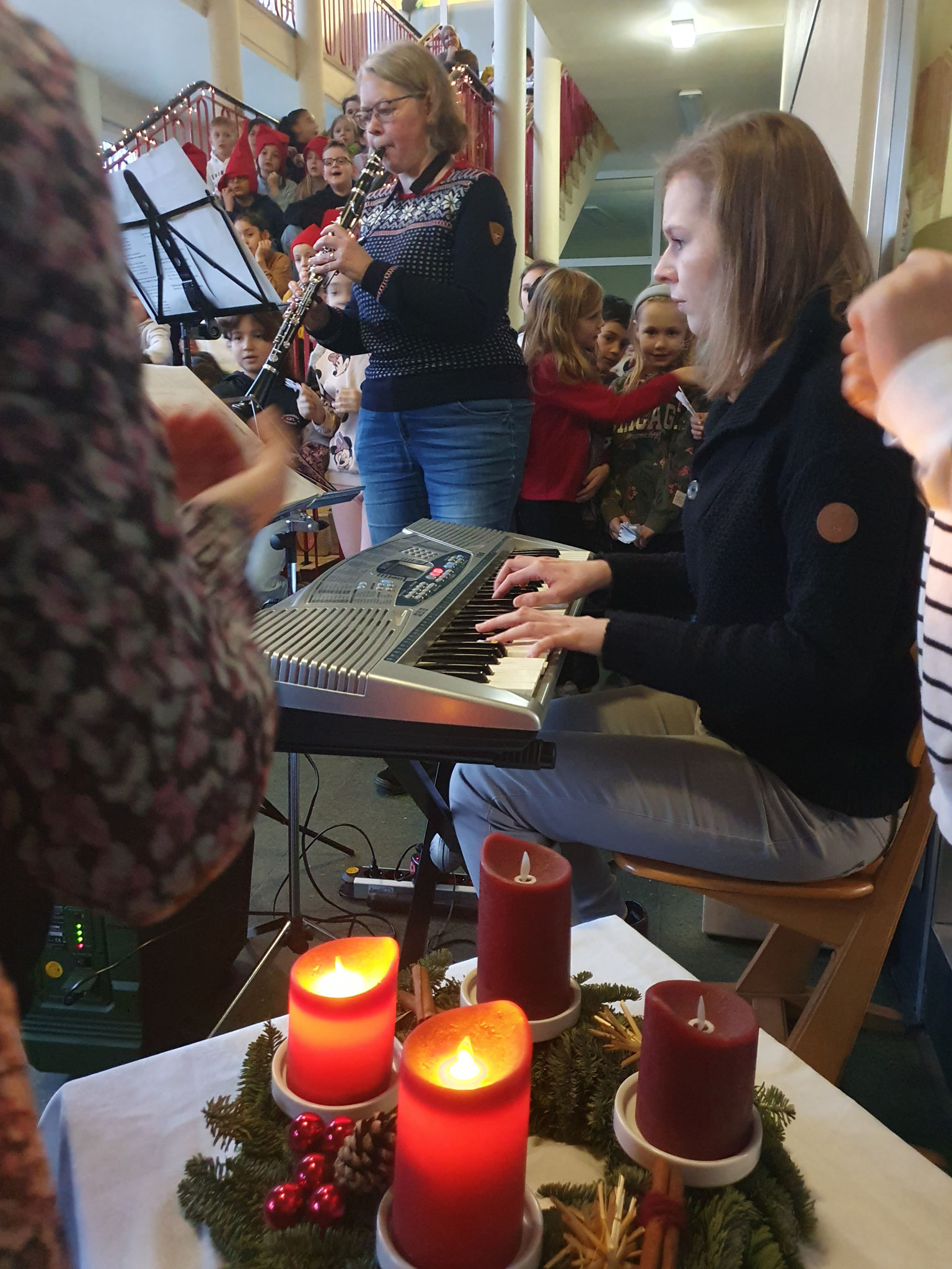 Für besondere musikalische Momente sorgten die Schulleitung Frau Nüsken mit Begleitung auf der Klarinette sowie die Kollegin Frau Danilow am E-Piano. Die Kinder präsentierten mit viel Freude und Engagement Lieder, kleine Aufführungen und weitere weihnachtliche Beiträge.