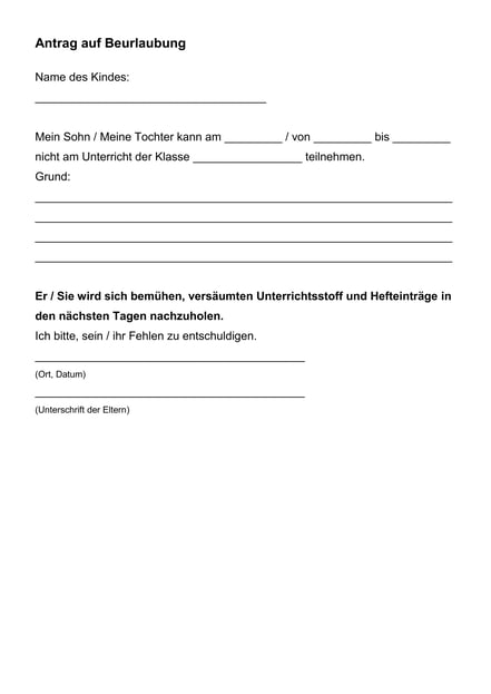 Antrag auf Beurlaubung