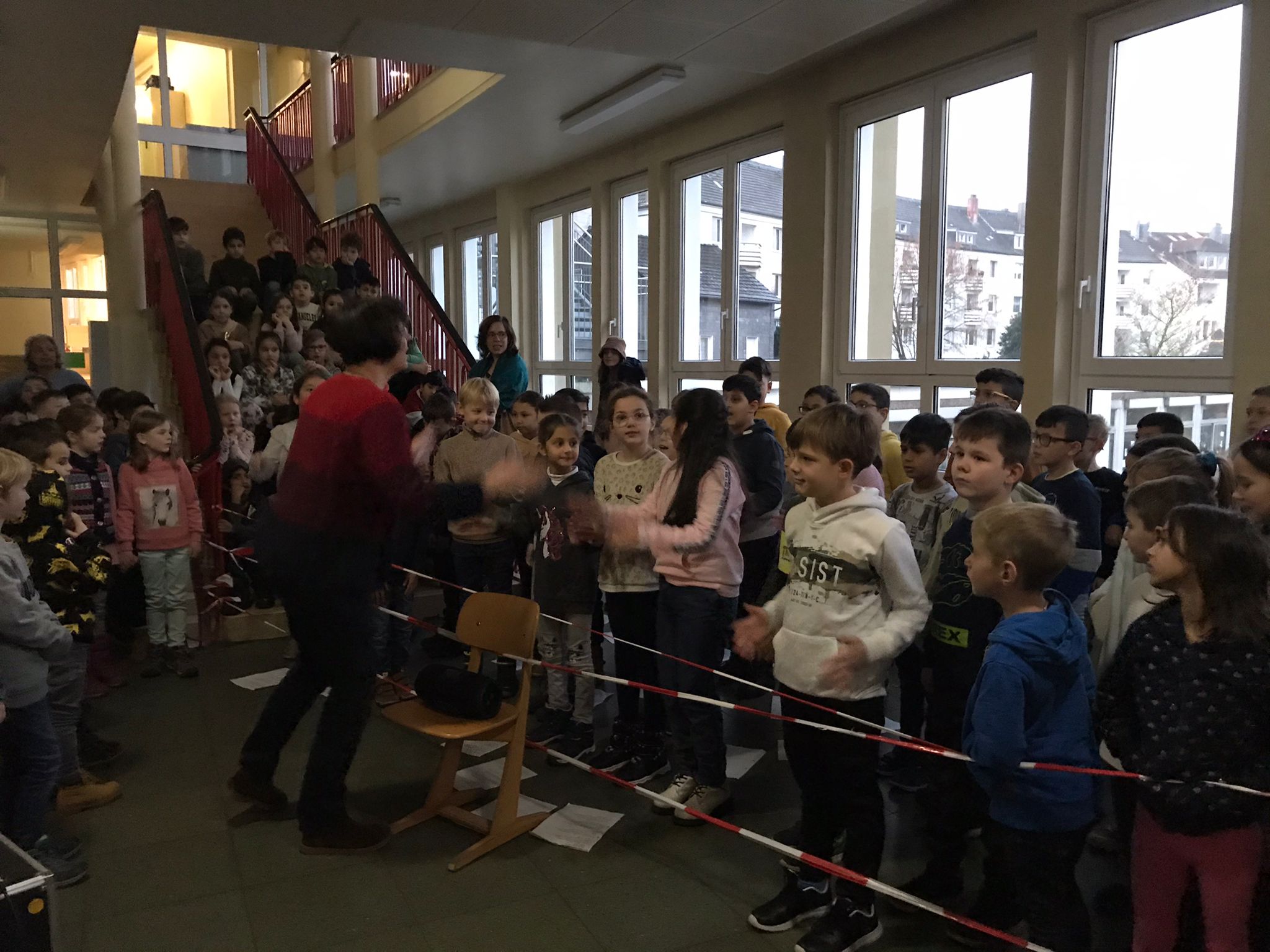 Nach der erzwungenen Coronapause konnte in diesem Jahr endlich wieder unser traditionelles Treppenhaussingen stattfinden. Gemeinsam im noch halbdunklen Treppenhaus Lieder zu singen und kleine Aufführungen der Klassen anzuschauen macht allen viel Freude und stimmt uns auf die Zeit rund um Weihnachten ein ...