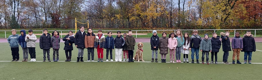 Nachdem unser Schulhund Kiba nun schon seit 5 Jahren sehr erfolgreich mit Frau Bischzur in unserer Schule im Rahmen der tiergestützten Pädagogik aktiv ist, hatte heute unser zweiter Schulhund Cira seinen ersten Schultag in der Fliegenpilzklasse. Zuvor hatten sich die Kinder mit den Regeln im Umgang mit Hunden beschäftigt und waren gut vorbereitet auf Ciras Besuch. Nach einer fröhlichen Kennenlernrunde im Klassenraum ging es direkt zum Hundespaziergang in den Stadtpark und zum Spielen auf den Sportplatz. Alle Kinder haben auf Anhieb ein vertrauensvolles Verhältnis zu Cira aufbauen können und freuen sich auf weitere Schultage mit Hundebesuch.