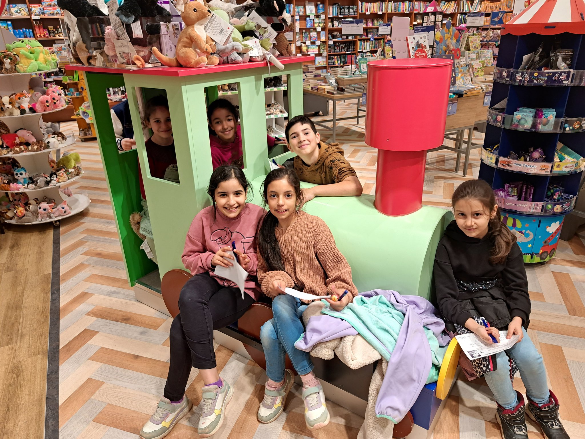 Am 7.5.2024 waren wir in der Buchhandlung Thalia. Wir haben eine kleine Schnitzeljagd gemacht. Auf Plakaten waren Rätsel, die etwas schwer waren, aber wir haben es geschafft. Das Lösungswort war Heimweh. Wir haben dann ein Buch und einen Stift geschenkt bekommen, weil am 23.04.24 Welttag des Buches war. Das Buch heißt „Ich schenke dir eine Geschichte - Mission Roboter“. Danach sind wir zurück zur Schule gegangen. Das war der Ausflug nach Thalia. Ende.