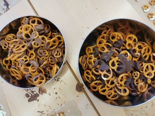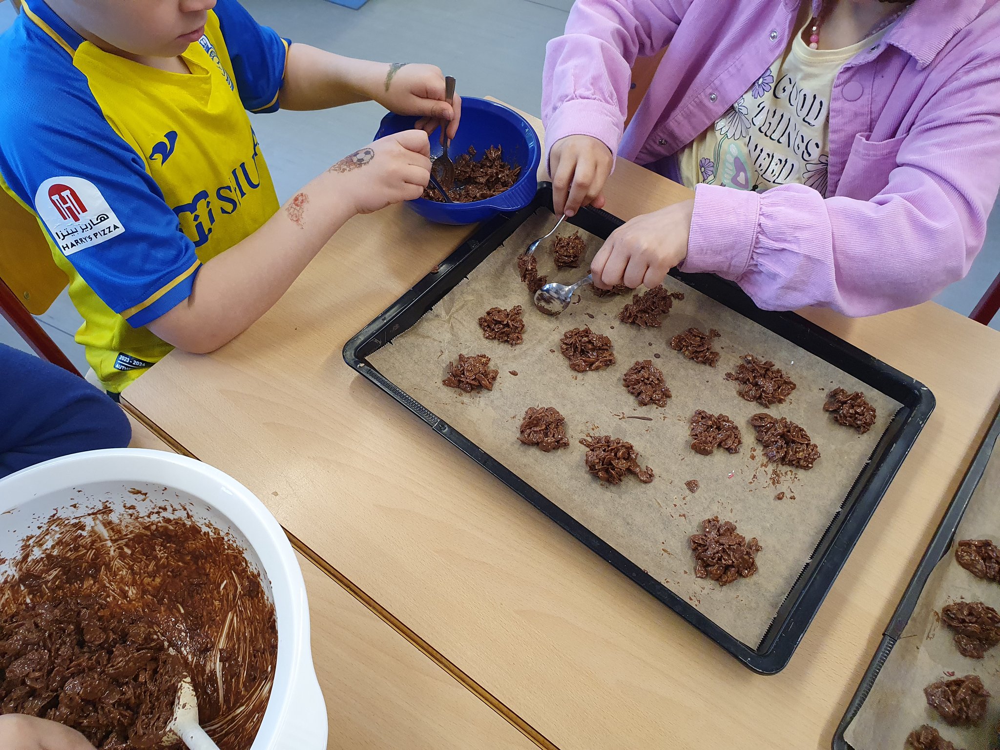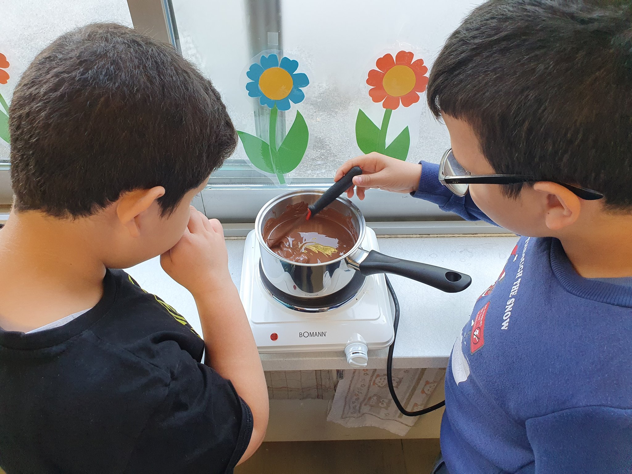 Beim Projekt Schoko & Co. ging es um selbstgemachte süße und salzige Leckereien, die allen gut geschmeckt haben. Da wurde abgewogen, gerührt, geknetet, geschmolzen, geschnippelt - und probiert ... Auf dem Schulfest können Sie sich von den Ergebnissen selbst überzeugen!