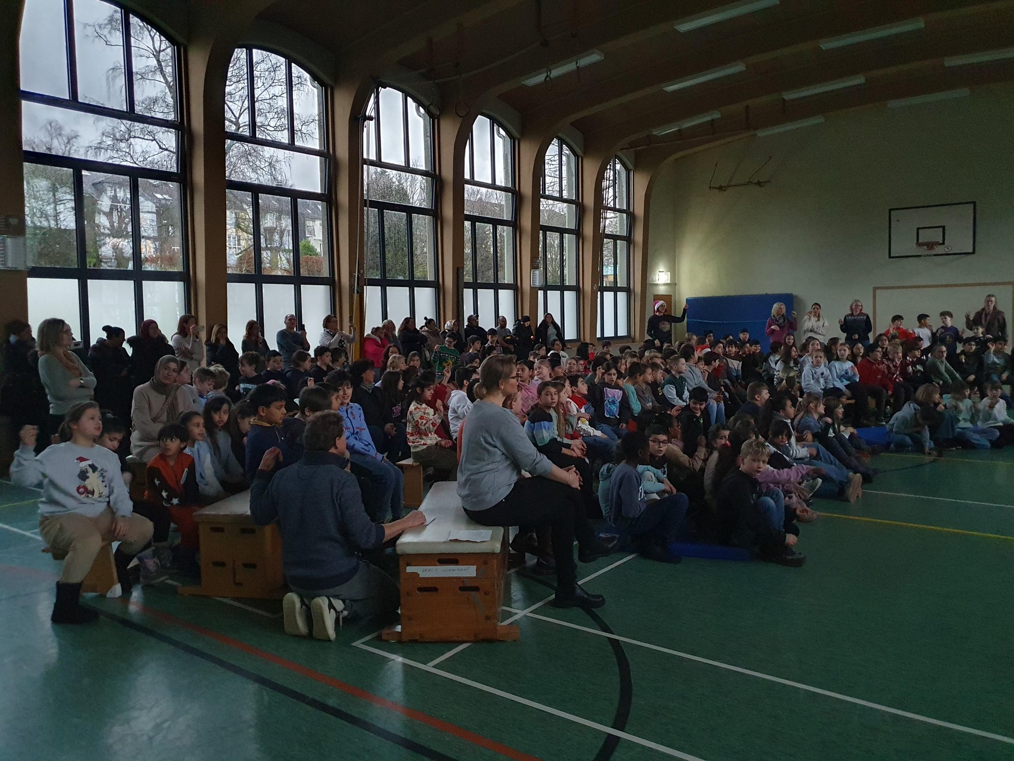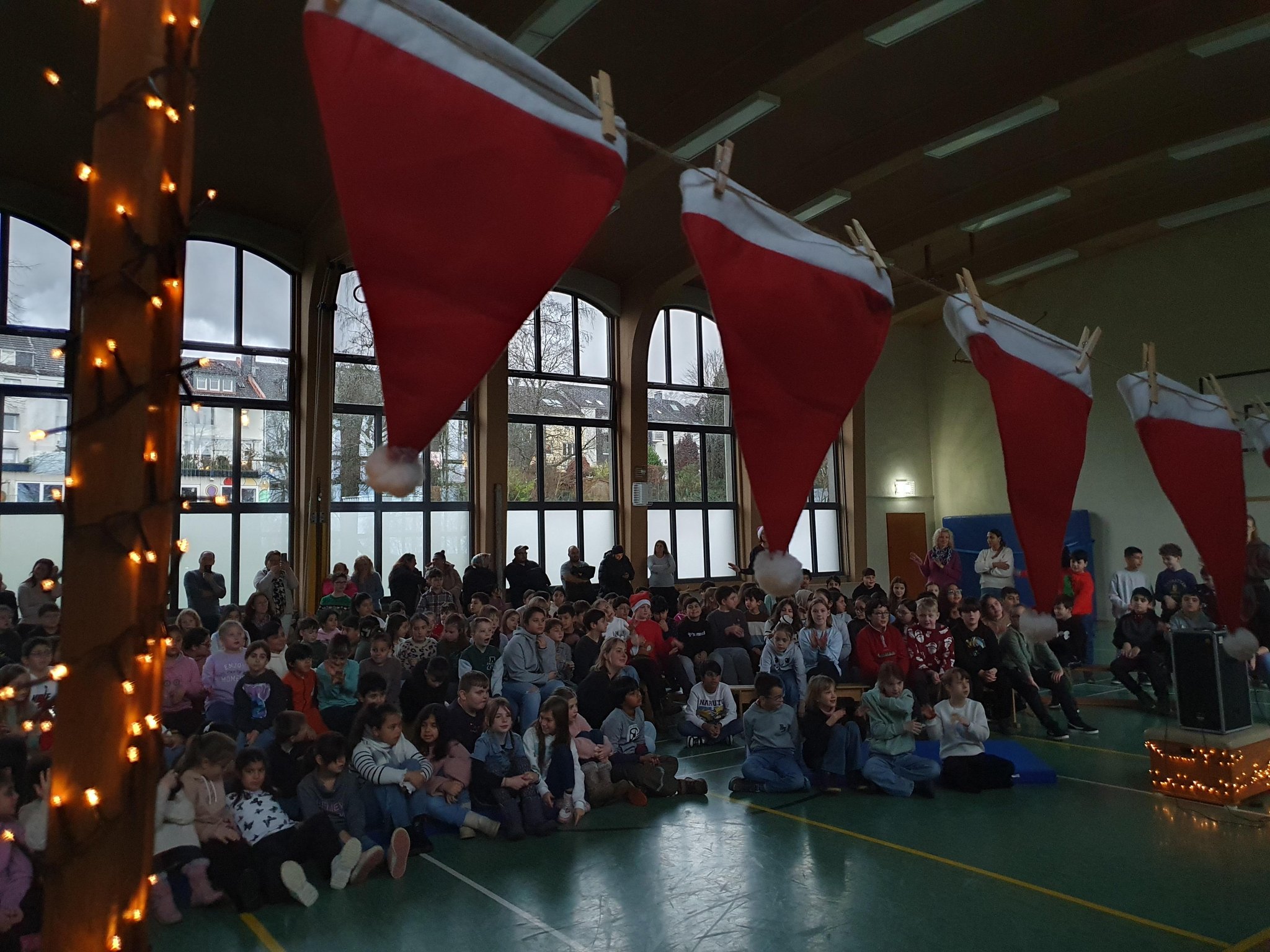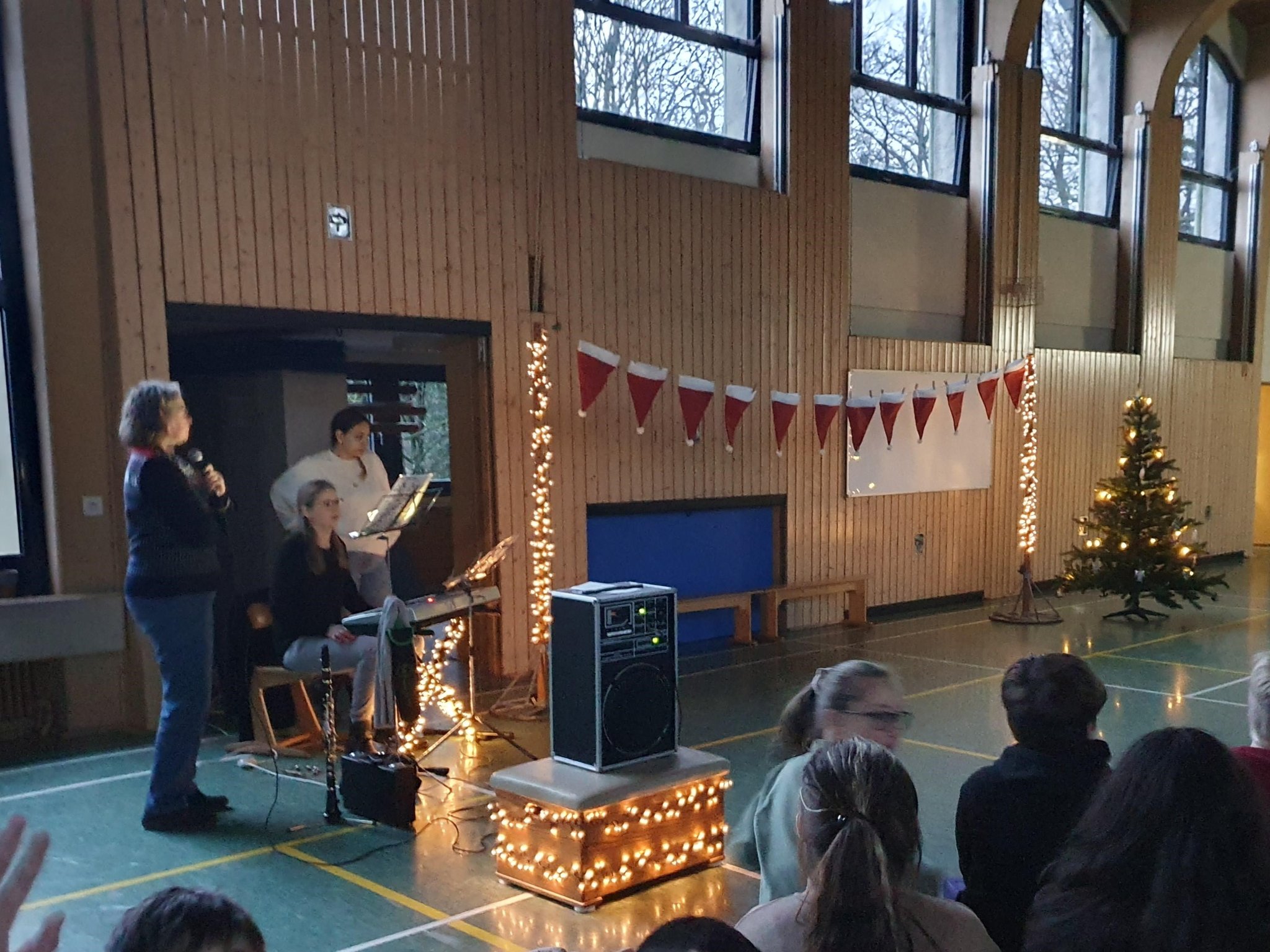 Zur Einstimmung auf die Weihnachtsferien haben sich am vorletzten Schultag alle Dritt- und Viertklässler*innen in der noch dunklen Turnhalle versammelt, um gemeinsam Lieder zu singen und sich kleine Vorführungen aller Klassen anzuschauen. Schön, dass auch einige Eltern den Weg in die Turnhalle gefunden hatten! Beim Singen wurden wir durch Klarinette (Frau Nüsken) und Klavier (Frau Danilow) begleitet, was sich dadurch sehr schön anhörte. Danke dafür und danke auch an alle Klassen, die sich auf diese Feier so gut vorbereitet hatten.
