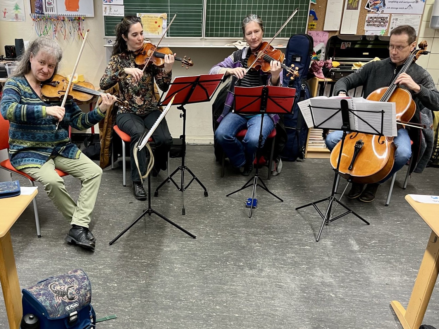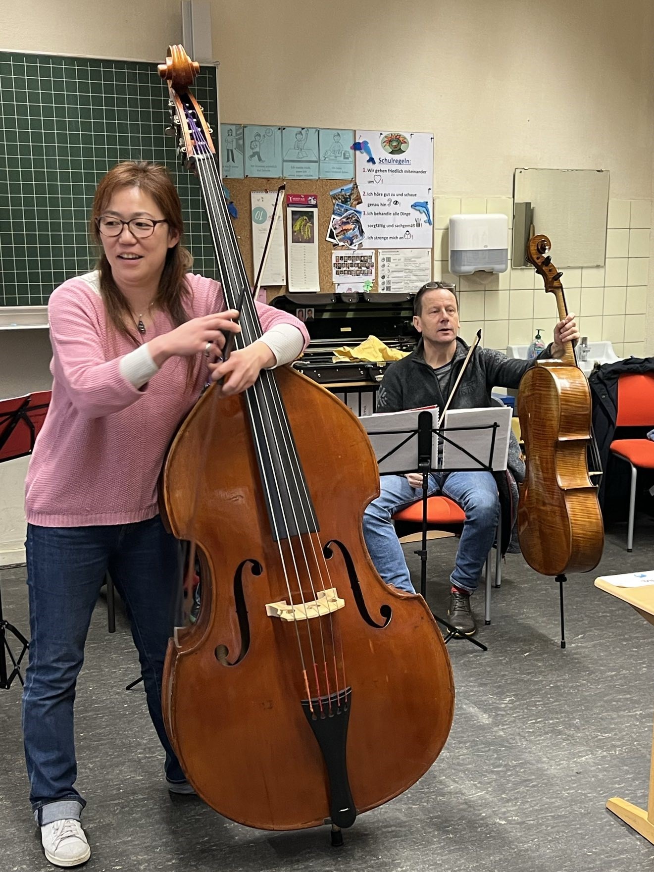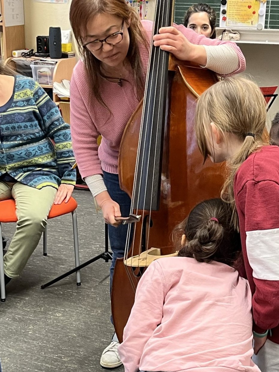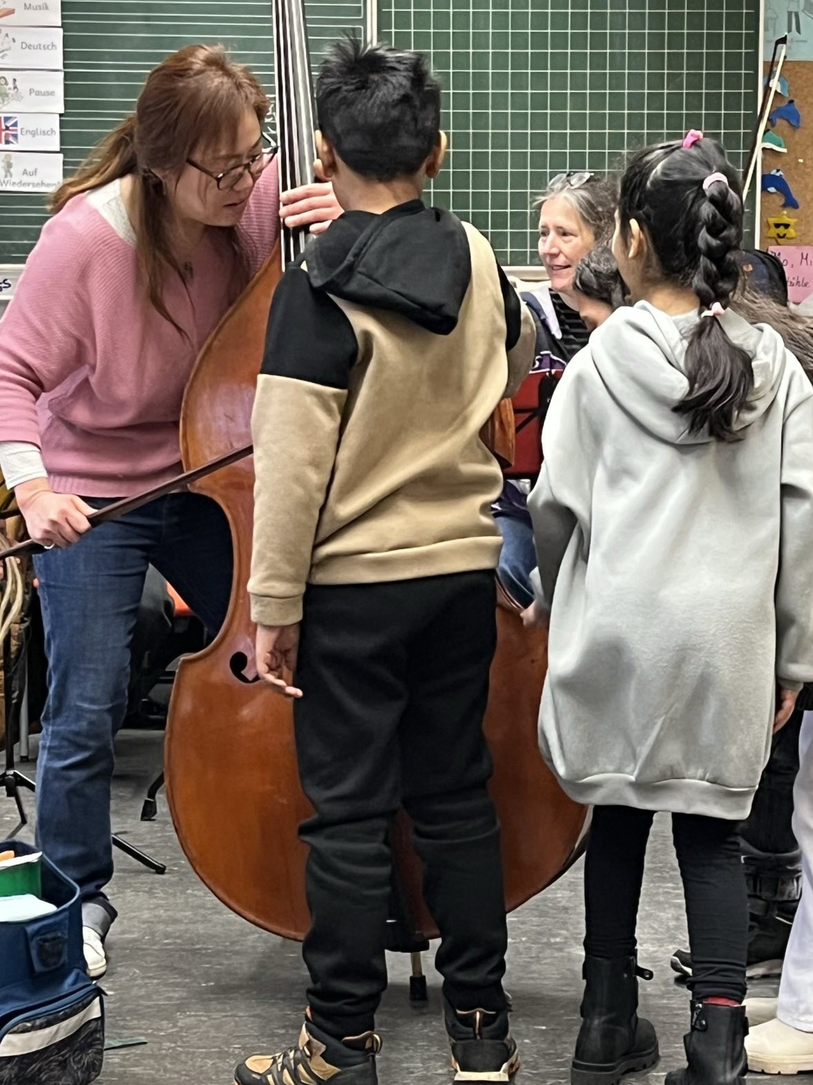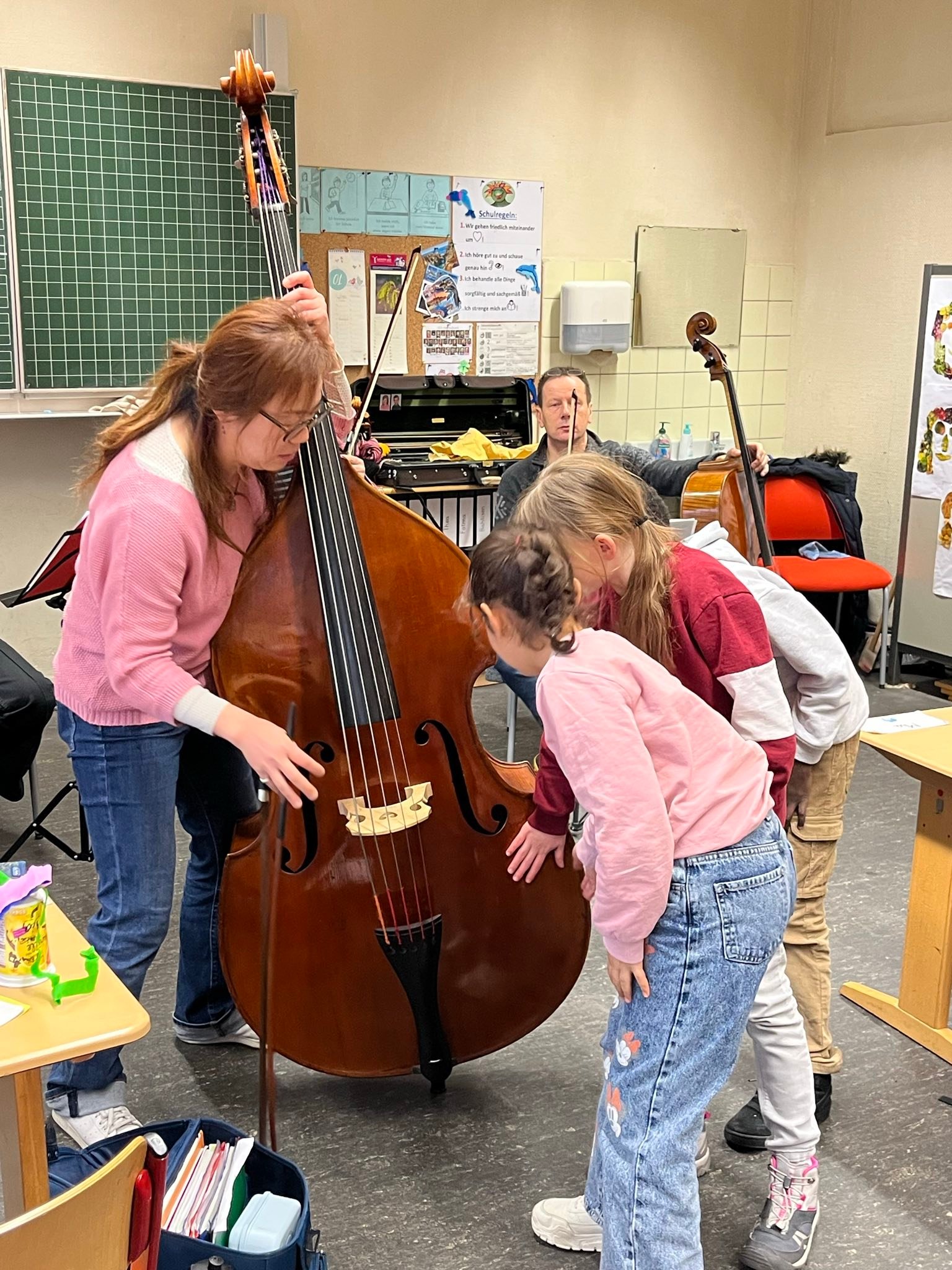 Im Januar besuchten die Bergischen Symphoniker alle Drittklässlerinnen und Drittklässler und ermöglichten es den Kindern, ihre Instrumente hautnah kennenzulernen! Sie erklärten, wie jedes Instrument funktioniert und welche Rolle es im Orchester spielt. Unter Anleitung der Musikerinnen und Musiker durften die Kinder einfache Melodien mit ihren selbst gebastelten „Zupfbechern“ mitspielen und kleine Lieder mitsingen! Das hat viel Spaß gemacht!