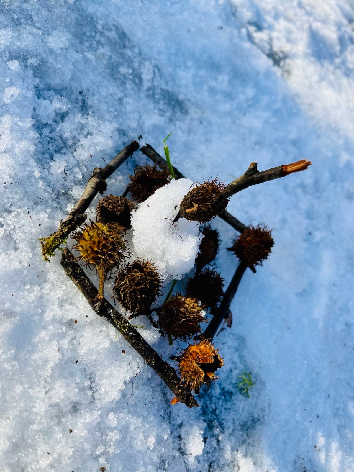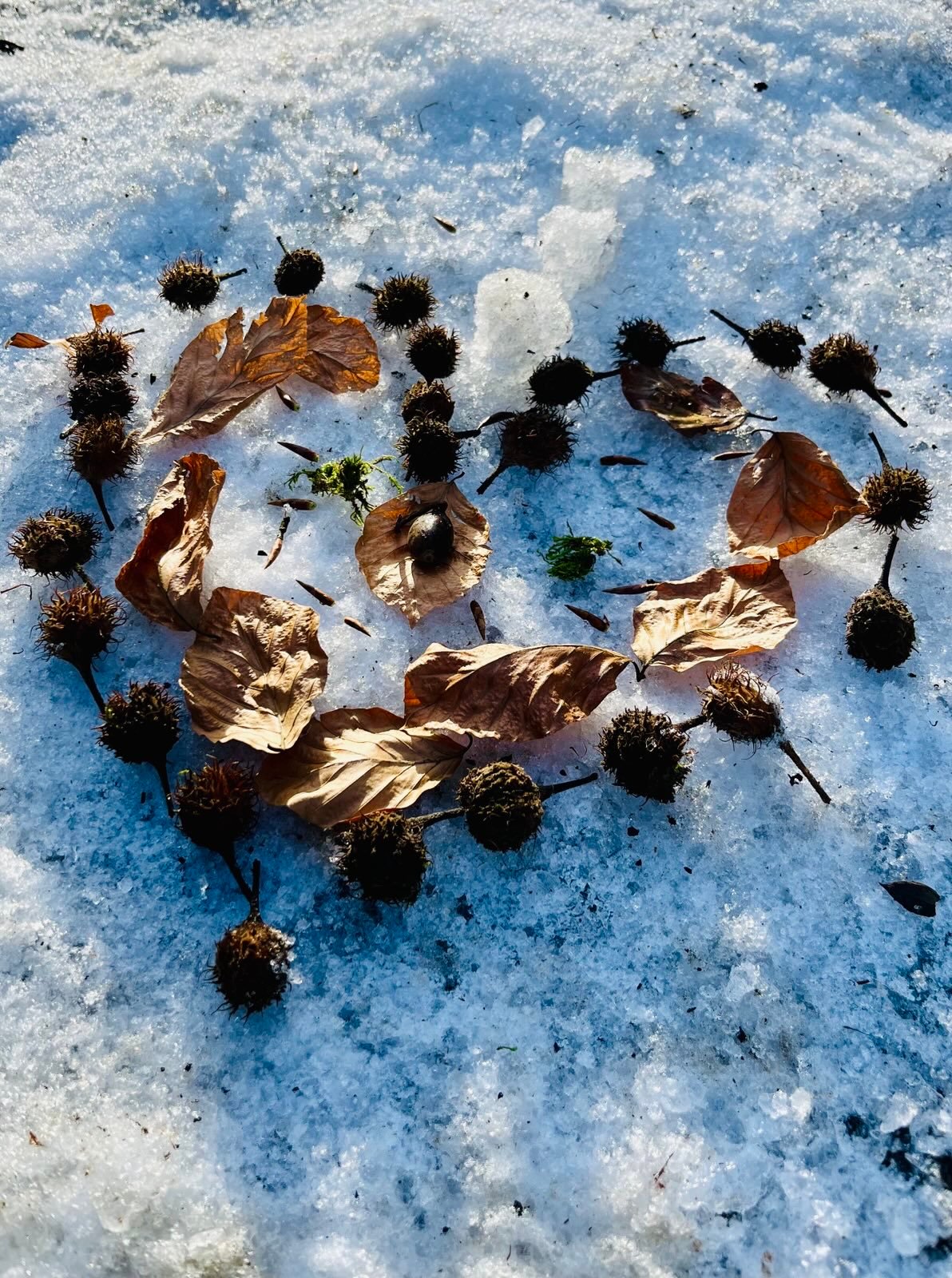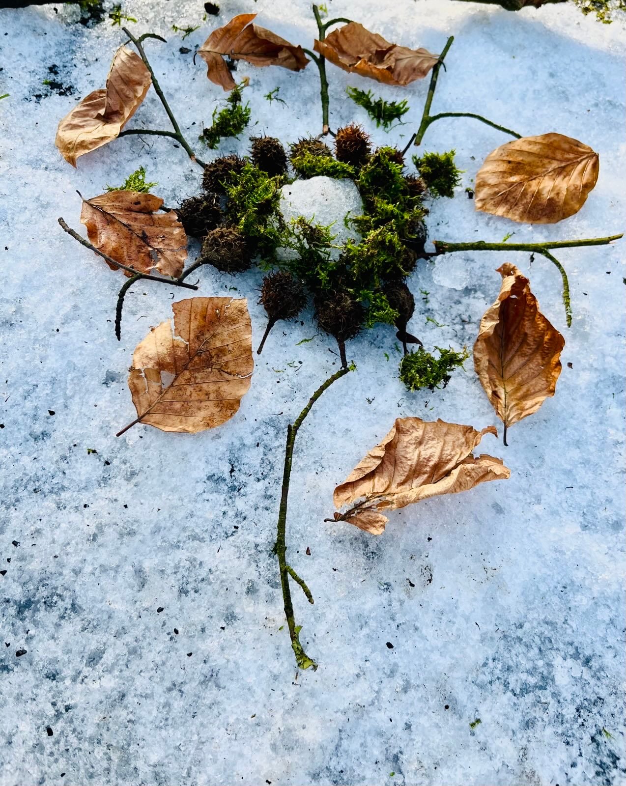 Im Religionsunterricht gestalteten wir tolle Naturlegebilder zum Thema: "Schöpfung im Winter".