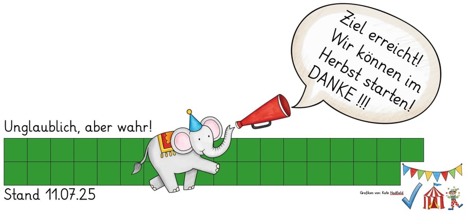 Dank Ihrer großartigen Unterstützung, Ihres Engagements – und nicht zuletzt dank des unermüdlichen Einsatzes Ihrer Kinder – haben wir unser Spendenziel für das große Zirkusprojekt im Herbst 2025