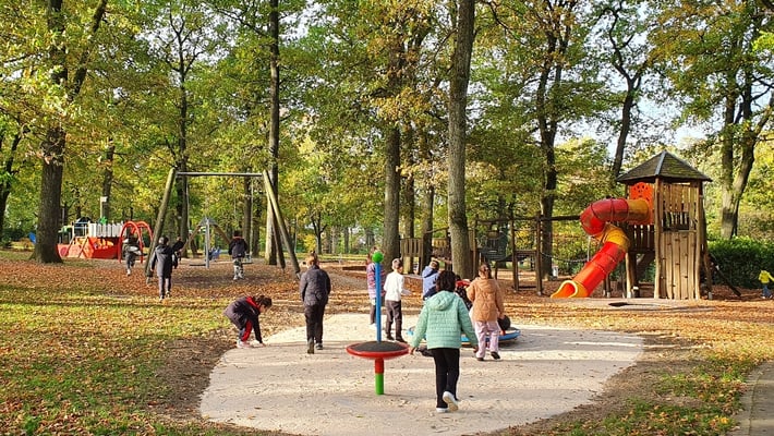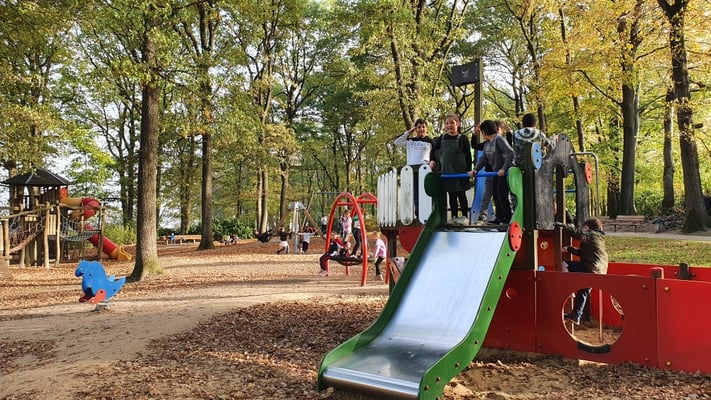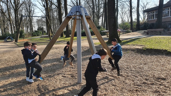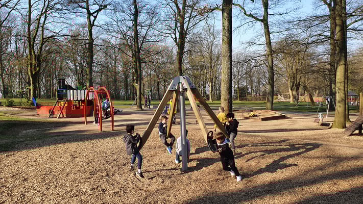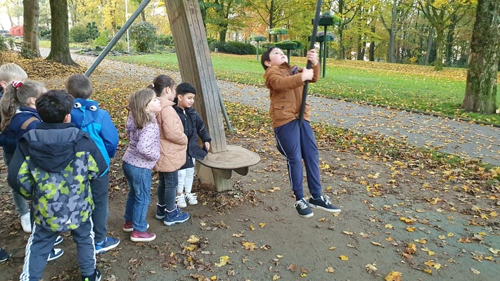 Die GGS Am Stadtpark liegt direkt neben dem Stadtpark - und mitten im Stadtpark gibt es einen tollen Spielplatz ... Alle Kinder genießen ab und zu eine Sportstunde in der freien Natur!